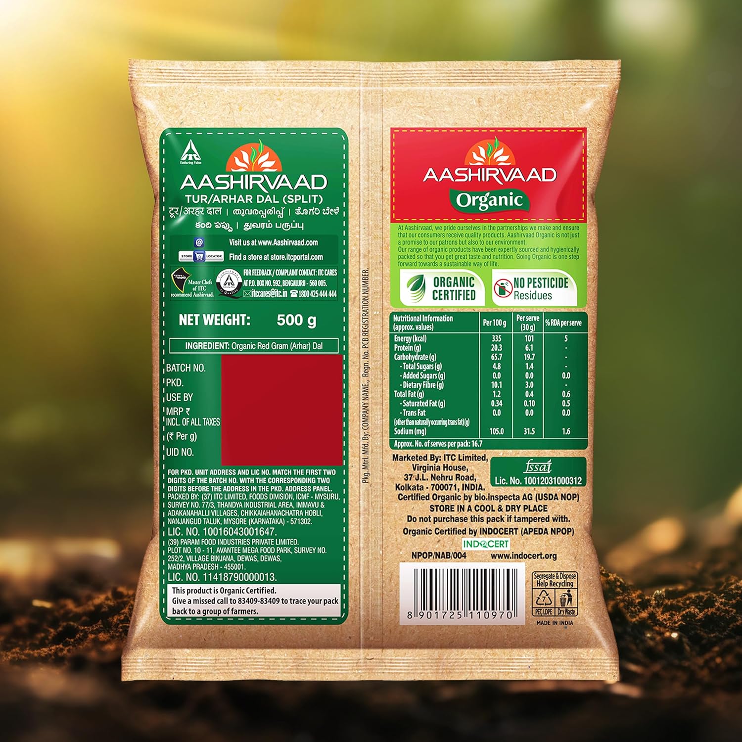 Aashirvaad Organic Arhar/ Tur Dal, 500 g, 100% Organic Arhar/ Tur Dal Rich in Protein