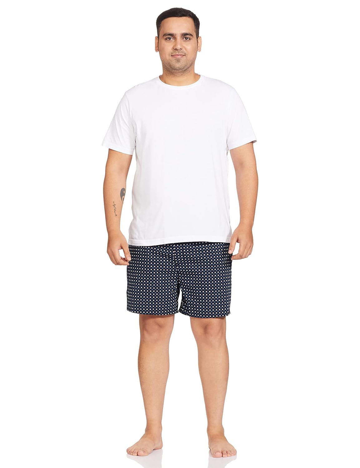 Amazon Brand – Symbol Men’s Cotton Printed Boxer (Combo Pack of 2) Casual | Underwear | Half Short Pant-Regular Fit with Back Pocket