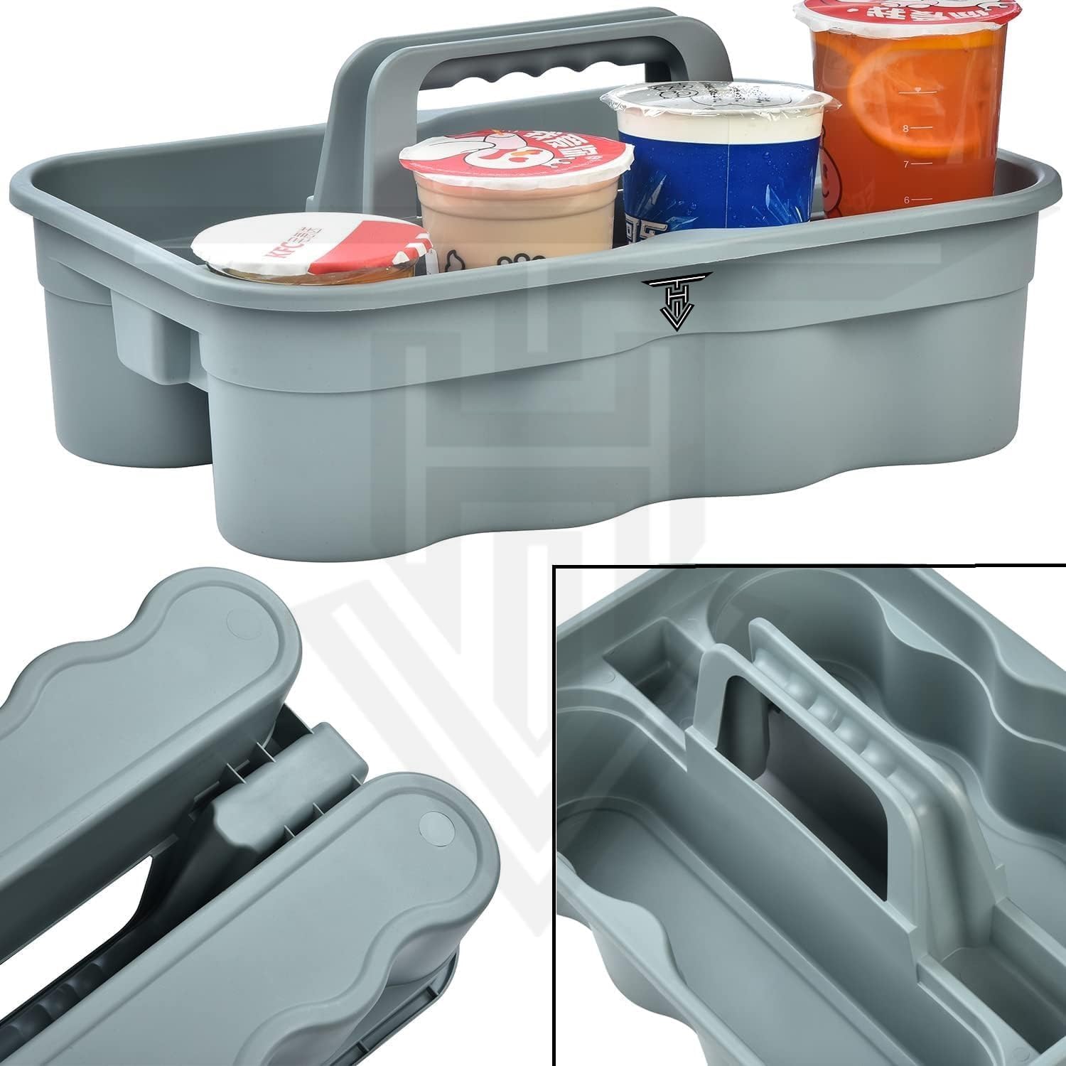 SPACE-SAVING DESIGN. Available in a small and large stackable design, this caddy is easy to carry when in use and stored away when done. The compact design reduces strain on the user, while the flat bottom allows setting it down without fear of spillage.