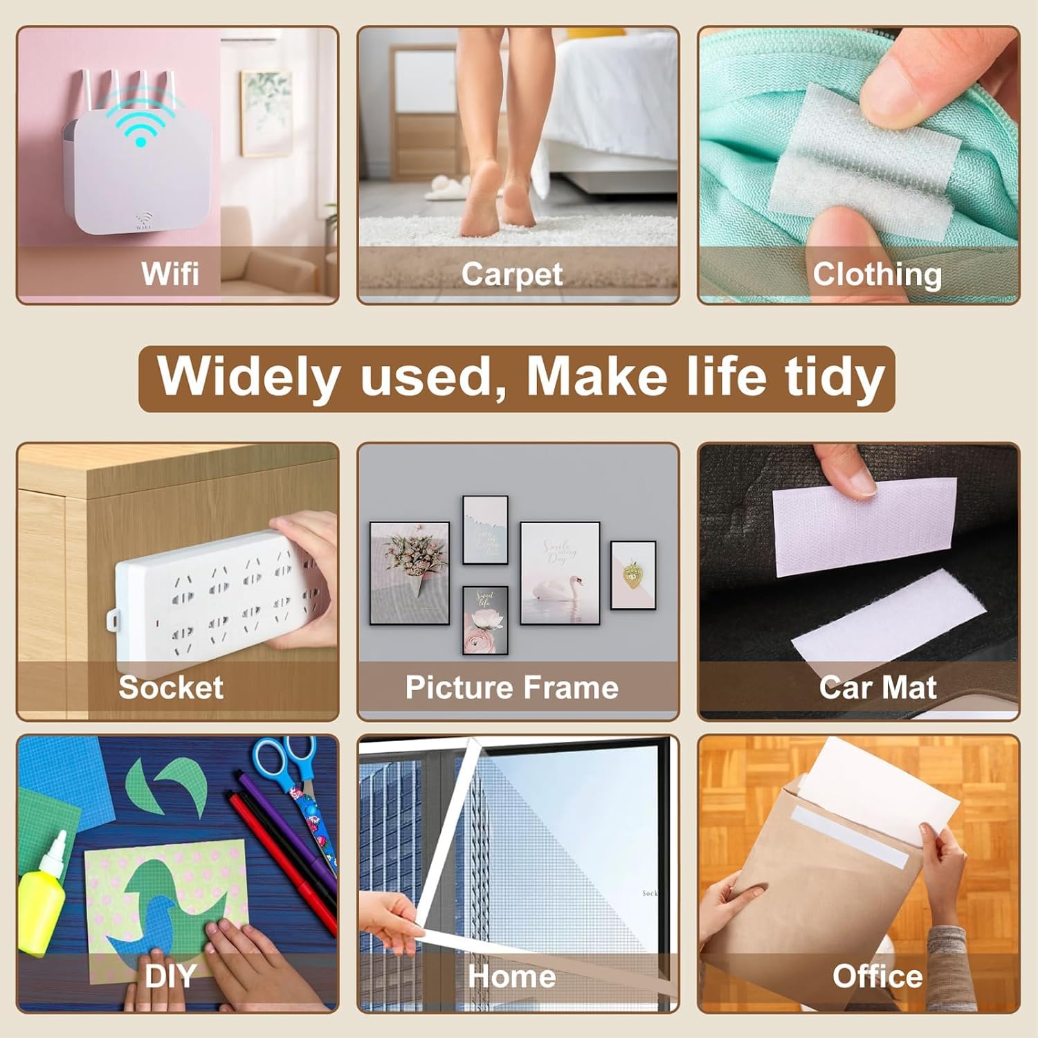 Customers find the hook and loop fastener easy to use and apply anywhere. They appreciate its strong adhesive, which allows it to stick well to surfaces like frames and remotes.
