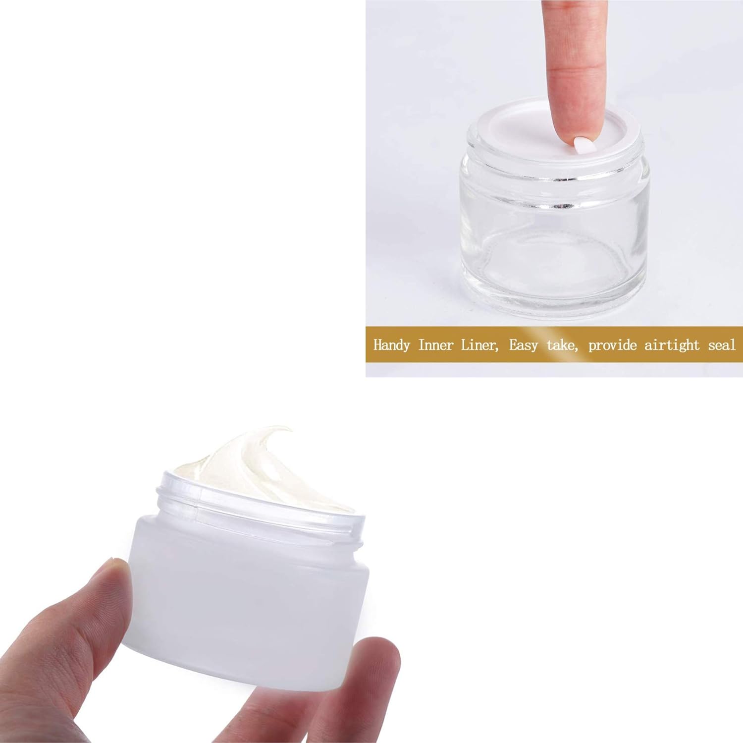 Well manufactured cosmetic containers, the glass is s thick and sturdy, the lids are smooth. Came with inner liners, the additional inner cap helps prevent leaks.