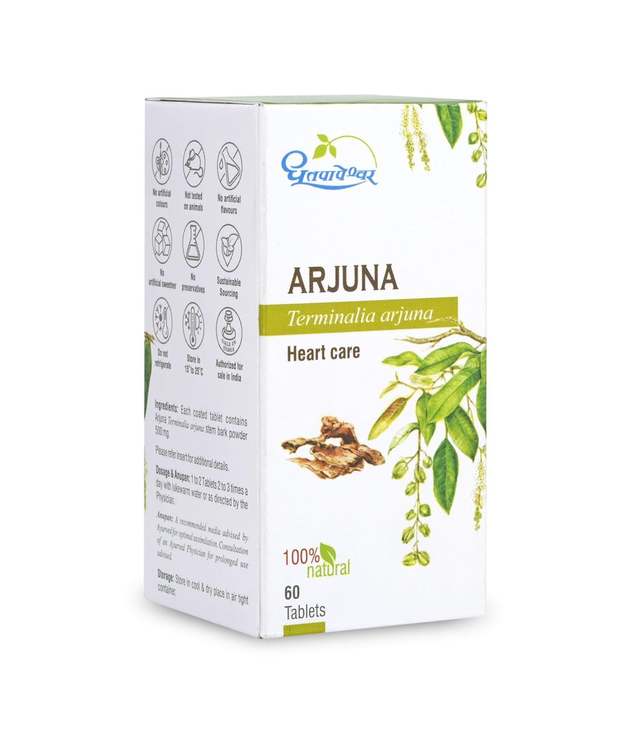 Dhootapapeshwar Arjuna Tablet | Supports Heart Health, Rich in Antioxidants | Anti-Inflammatory & Antibacterial | 60 Tablets X Pack of 2