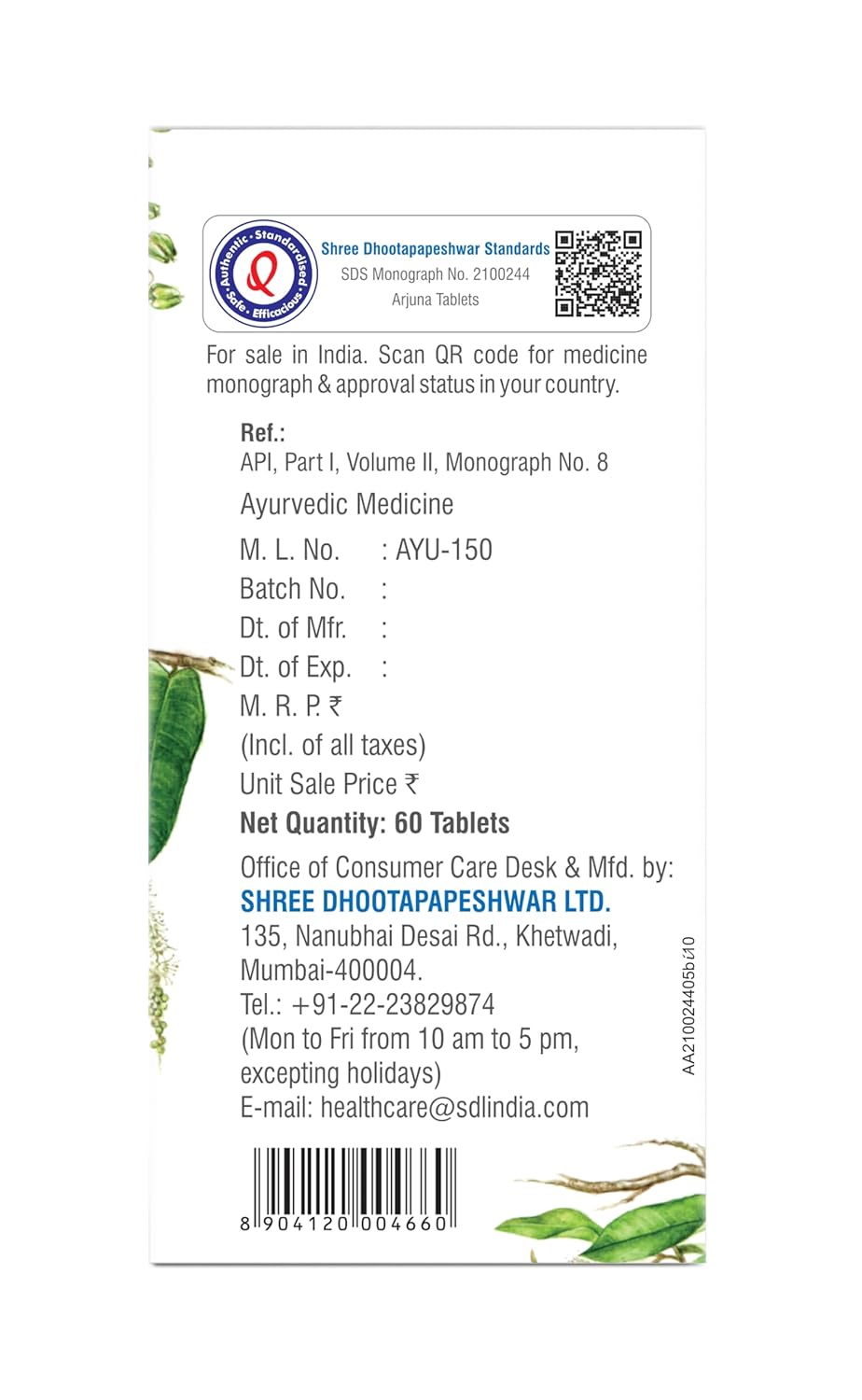 Manufacturer ‏ : ‎ SHREE DHOOTAPAPESHWAR LTD, Office of Consumer Care Desk & Mfd by: SHREE DHOOTAPAPESHWAR LTD. 135, Nanubhai Desai Rd., Khetwadi, Mumbai-400004. Tel.: +91-22-23829874 (Mon to Fri from 10 am to 5 pm, except holidays) E-mail: healthcare@sdlindia.com