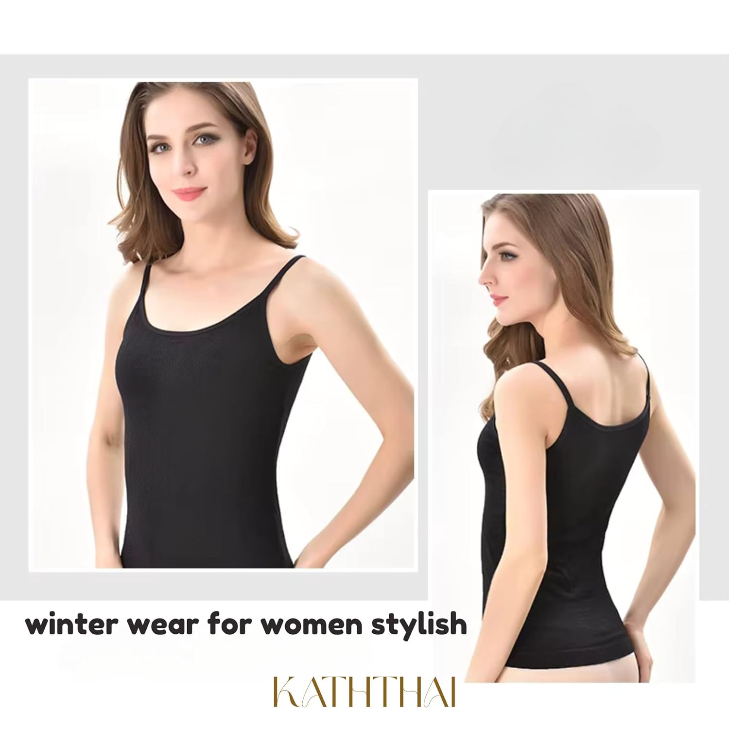KATHTHAI Thermal Wear for Women Stylish Velvet Camisole Woolen Tops Fleece Warmers, Slim-Fit Body Shaper Winter Inner Vest Shirt (Free Size)(Bust Size:66 to 95 CM)