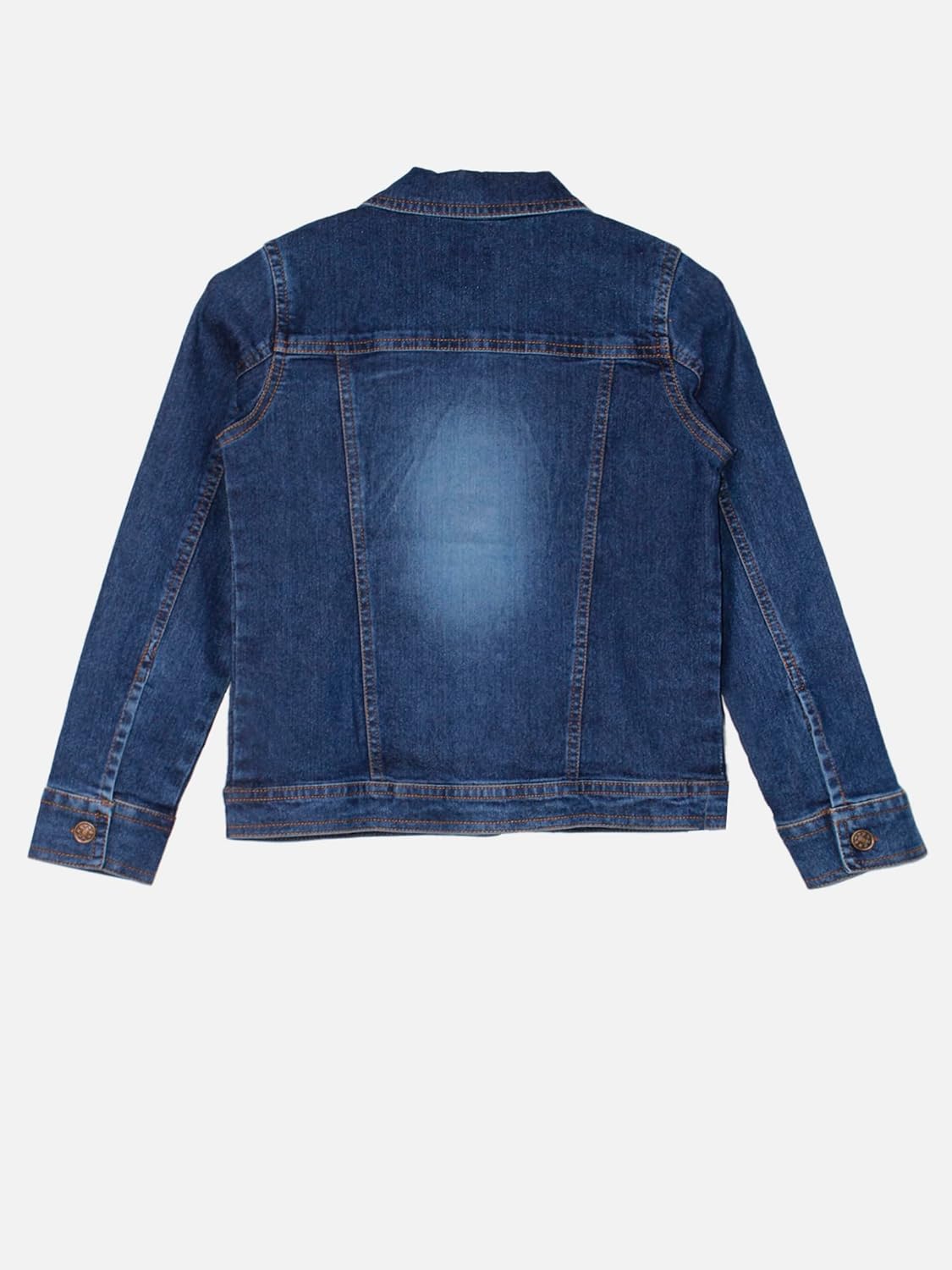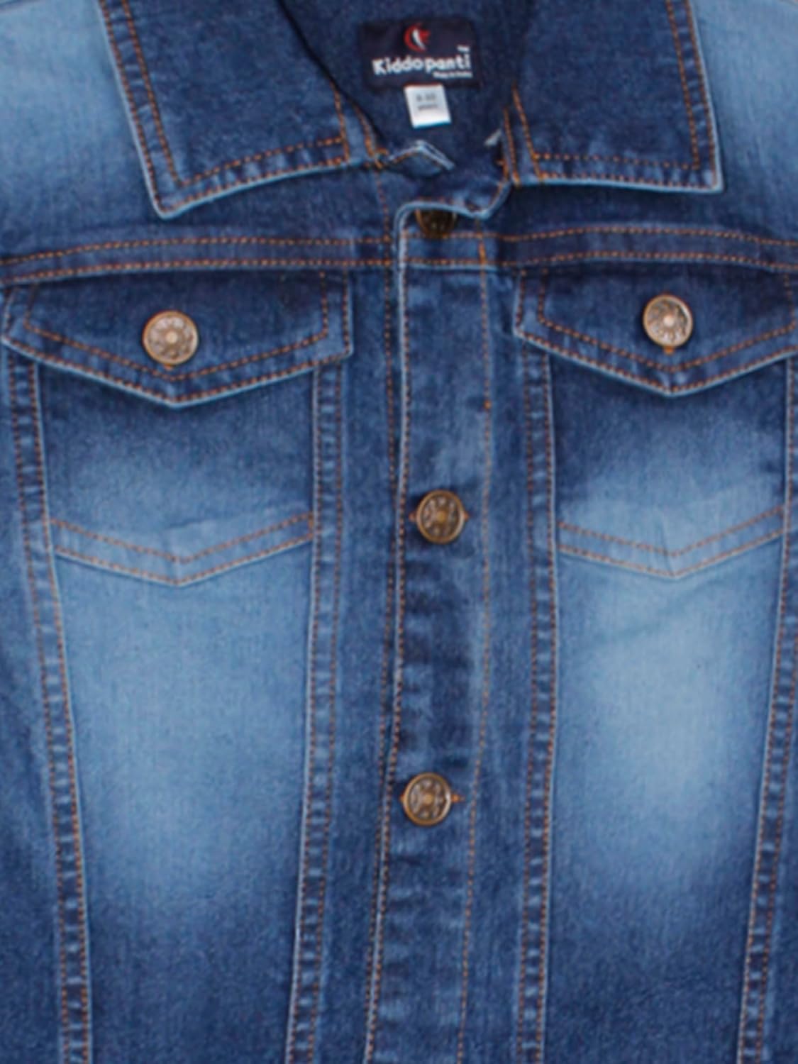 KiddoPanti Boys Denim Jacket | Cotton Poly Blend with Lycra | Washed Denim, Full Sleeve | Button Closure & Front Flap Pockets | Collared Neck