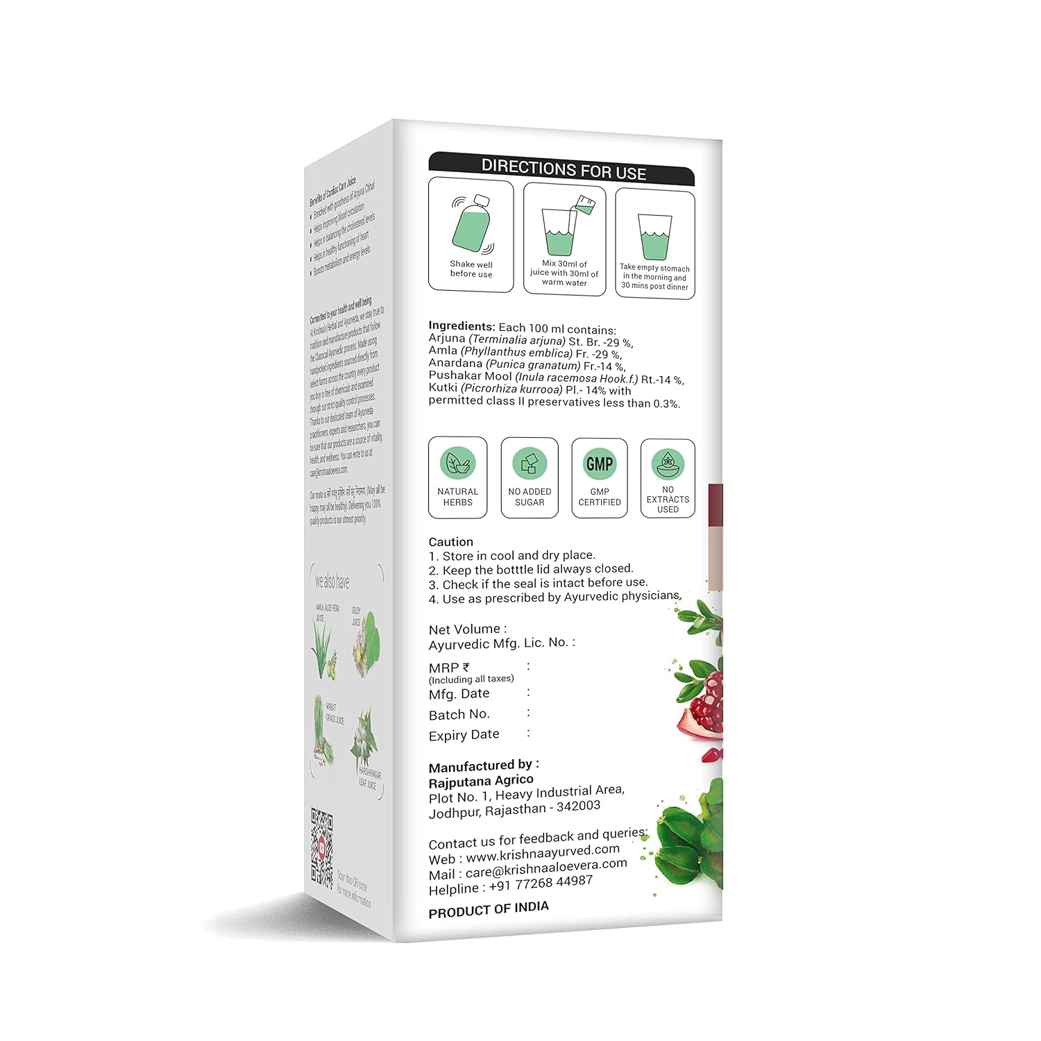 Krishna’s Cardiac Care Juice – 500 ml | Ayurvedic Heart care expert | Healthy Heart Cardiac Wellness | Enriched with Arjuna Chaal, Kutki, Amla, Anardana & Pushkar Mool