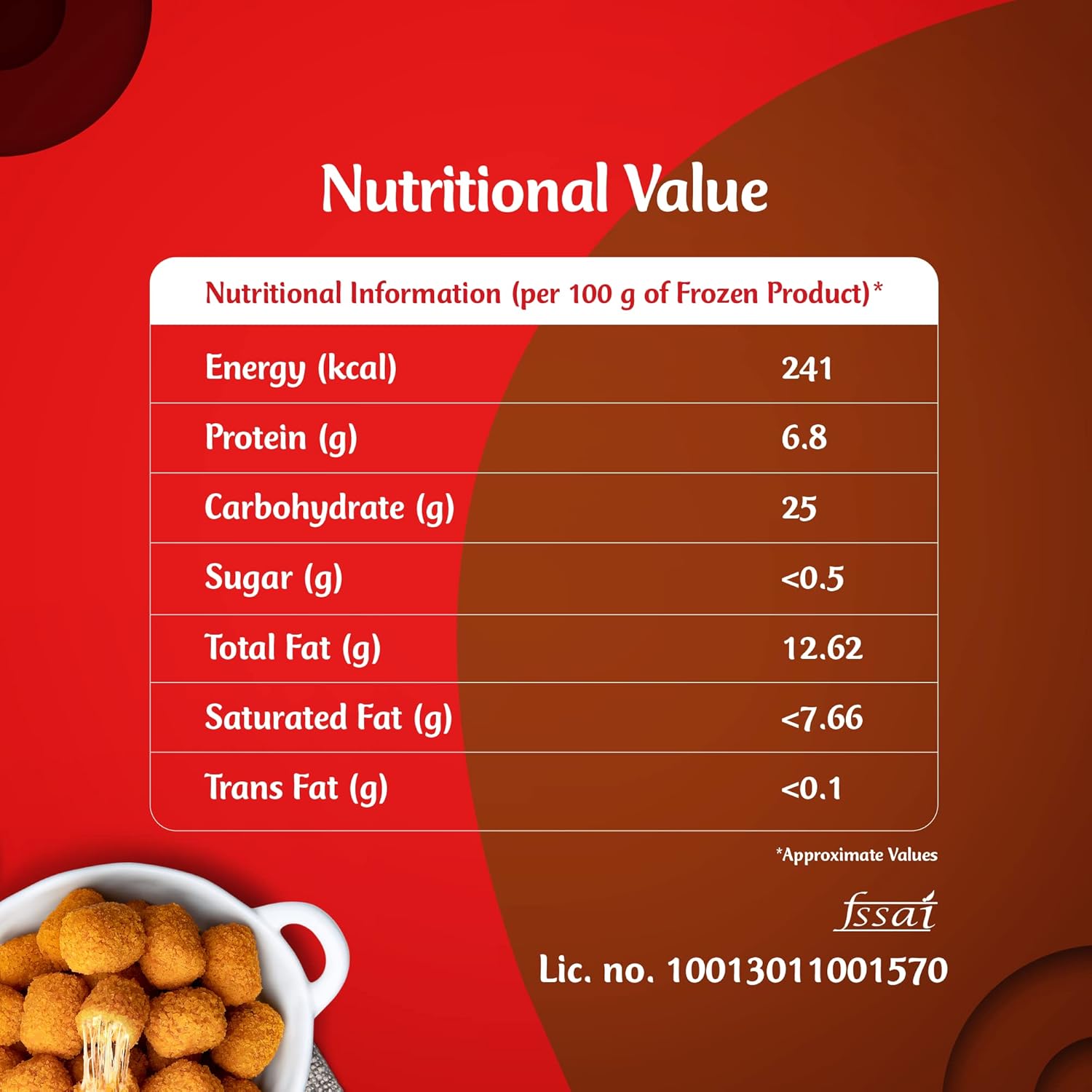 Chilli cheesy nuggets! These are delicious snacks that are hot and crisp on the outside yet have a soft, melting cheese filling with a flavourful hit of red chili flakes. Chillli cheesy nuggets is the only product that contains natural cheddar cheese & that too 28% of it.