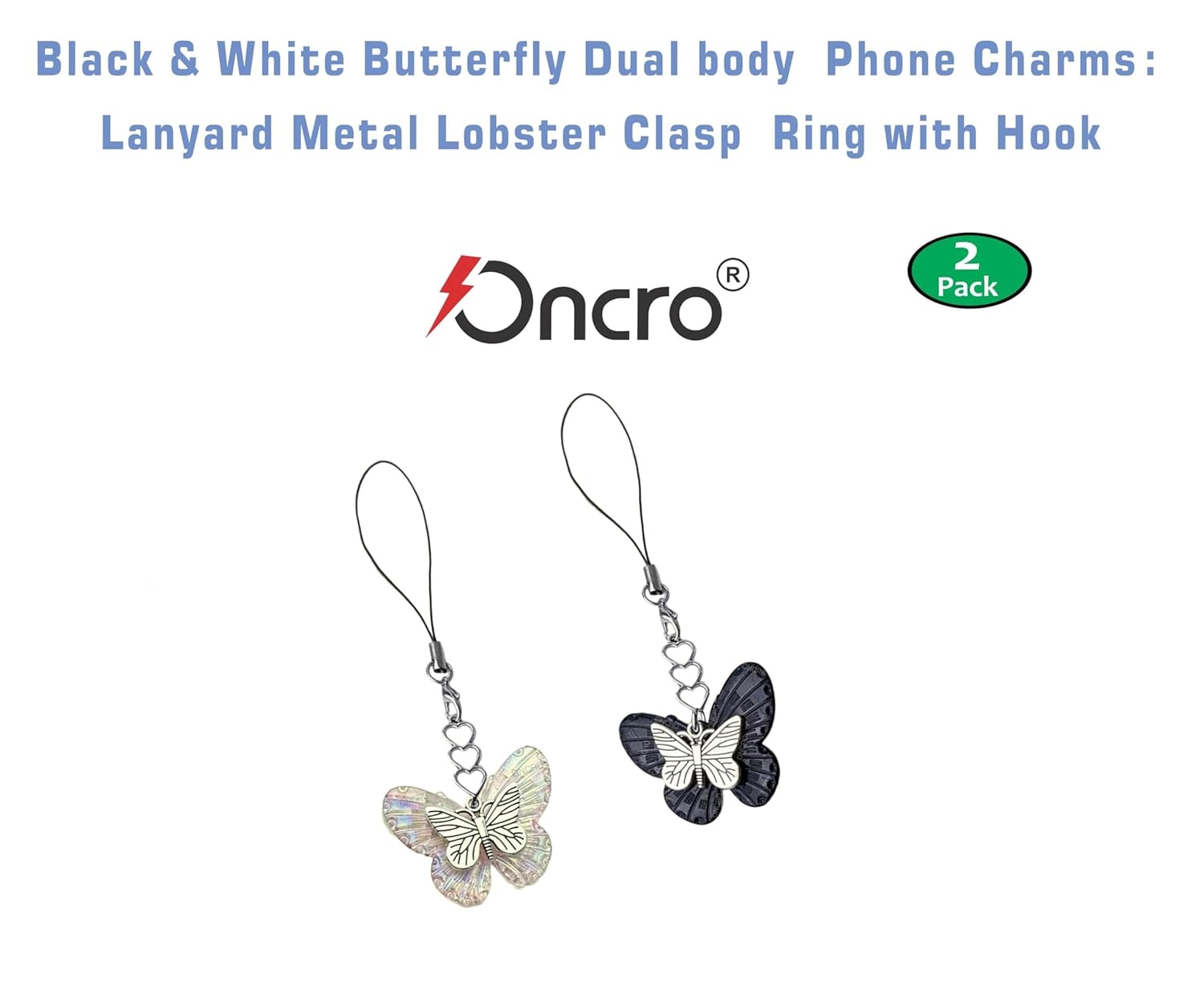 ONCRO® Lucky cute Dual Butterfly | Duo tone butterfly embossed Phone Charms metal Pendant aesthetic for girls women backpack hanging Keychain handy travel necklace bracelet