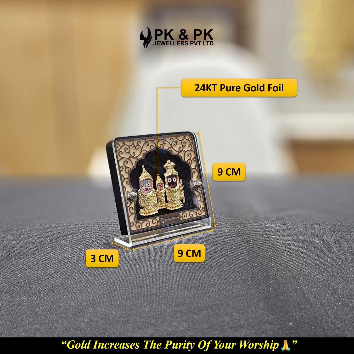 Pk & Pk Jewellers Jagannath Baldev Subhadra Table Top | 24KT Gold | Medium Size [9×9 cm] (for Premium Gift, Office Desk, Car Dashboard, Table Decoration