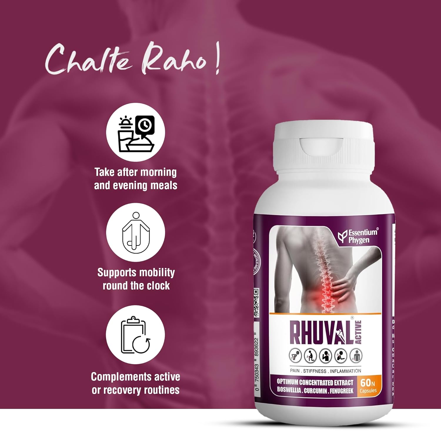 Rhuval Active 60 Capsules Ayurvedic Pain Relief Formula with Boswellia, Curcumin, Fenugreek & Ginger Reduces Inflammation, Stiffness & Supports Mobility