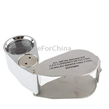 This 40X maginfication Illuminated Jeweler Loupe is built from durable metal with an optical glass that is 25 mm in length and has a dual bright LED light.