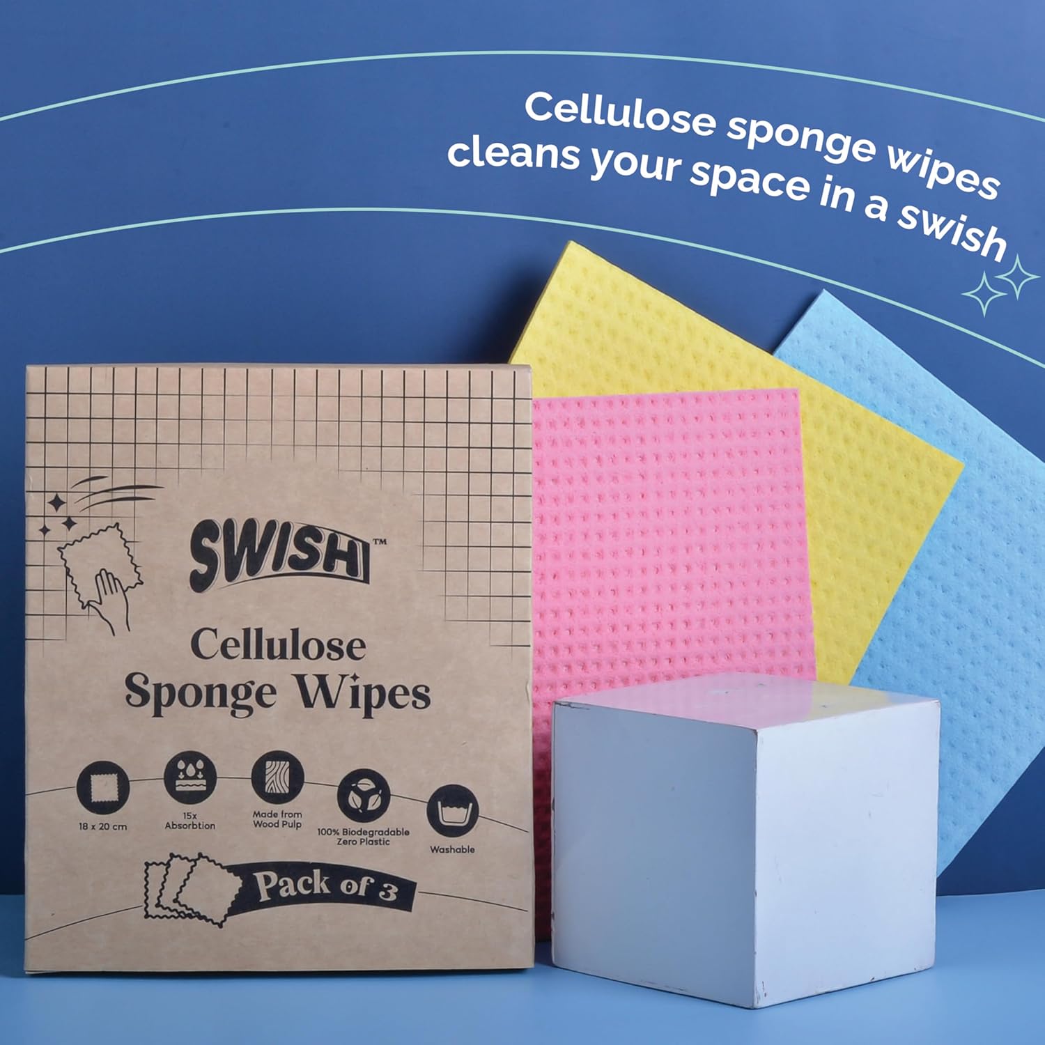 Ample Supply: This Swish cellulose sponge wipe set includes three sponge wipes for cleaning, giving you ample supply for all your cleaning needs. With their multicolor design, they add a touch of vibrancy to your cleaning routine while offering practicality and efficiency.