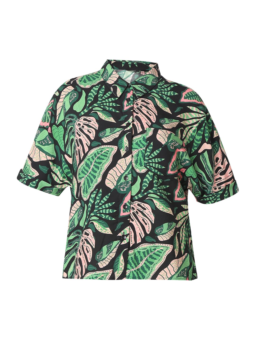 This printed shirt combines a classic charm with a modern edge. Adorned in an abstract print, it features a timeless shirt collar and short sleeves with rolled-up hem detailing for a touch of casual sophistication. The boxy fit and regular length add a relaxed silhouette, complemented by a single front pocket and front button closure. Perfectly versatile, this shirt effortlessly blends style and ease.