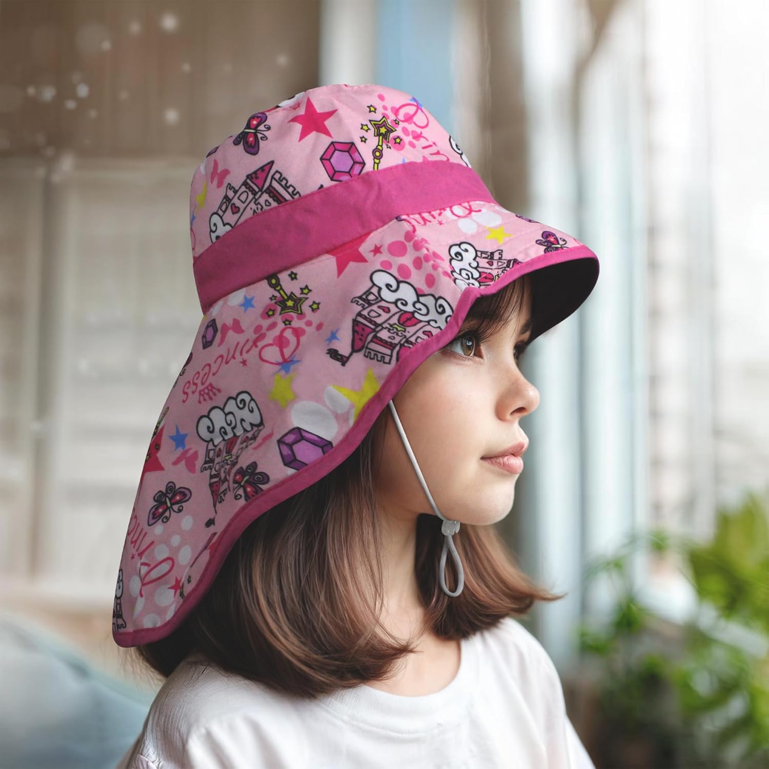 VRITRAZ Sun Protection UPF50+ Bucket Hat Toddler Summer Beach Play Hats with Neck Flap for Girl, Boy, Kids Summer Hat, Bucket Hat for Kids Ages 3-10 Years