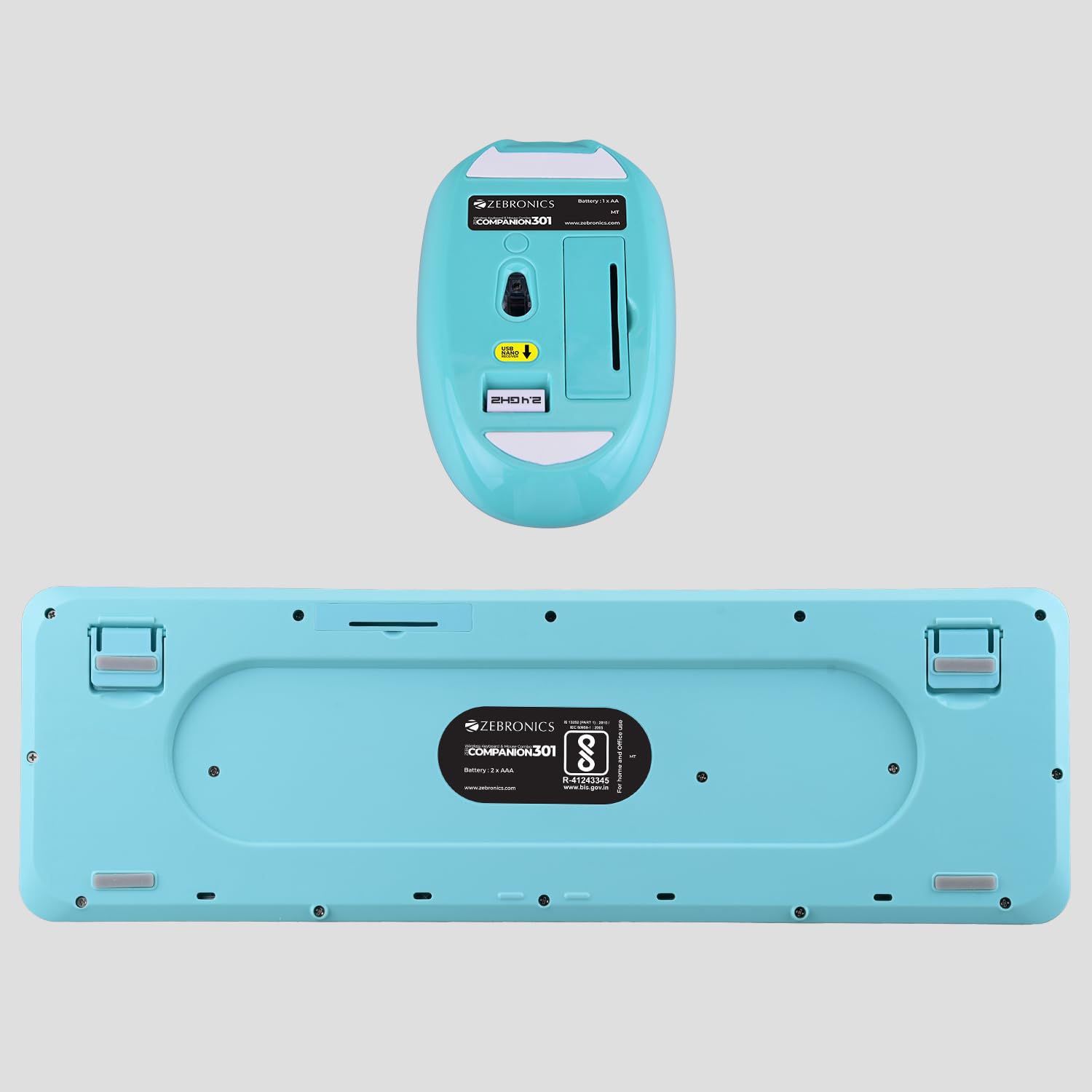 ZEBRONICS Companion 301 2.4GHz Wireless Keyboard & Mouse Combo with UV Printed, Retro Style Keys, 104 + 12 Integrated Multimedia Keys, 1600 DPI, High Precision (Aqua Green)